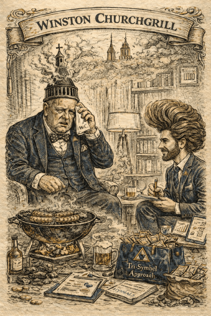 “I wake up at night imagining bishops arguing over propane,” he whispered. “Sometimes I dream of hymns accompanied by sizzling.”