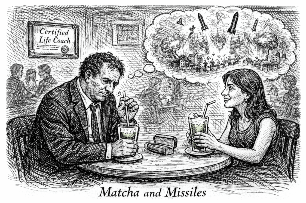“At first it was charming,” he said. “Endearing, even. A signature move. ‘Let’s get matcha,’ she’d say. And I’d think—yes. This is culture. This is antioxidants. This is a man evolving.”