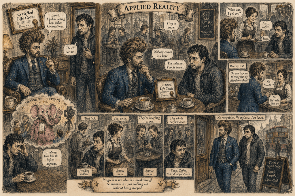 The world, in my professional experience, tends to ignore frameworks, resist reframing, and behave in ways that are deeply uncooperative with personal growth. It is much easier to coach a person in a controlled environment where the kettle works, the chairs are neutral, and no one is unexpectedly eating a sandwich three feet away.